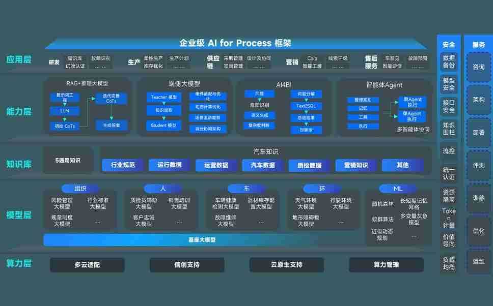 端到端的一站式AI工作空间深度融合了从企业战略规划到日常经营的全流程业务板块,,定向解决车企内部领域多、、部门多、、、链条长、、、场景碎片化等难题,,支持车企快速构建以AI为核心的生产力写作体系,,,实现任务执行与AI能力的无缝集成与交互